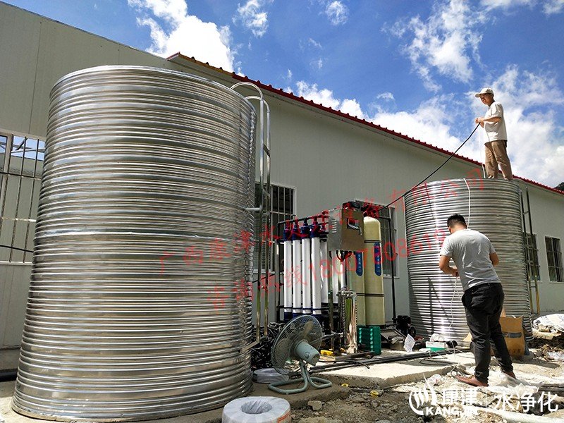 項目名稱:百色樂業項目部4噸超濾凈水設備 設備名稱:4超濾凈水設備 工藝流程:井水-原水箱-原水泵-石英砂過濾器-活性炭過濾器-精密過濾器-超濾設備-凈水箱...